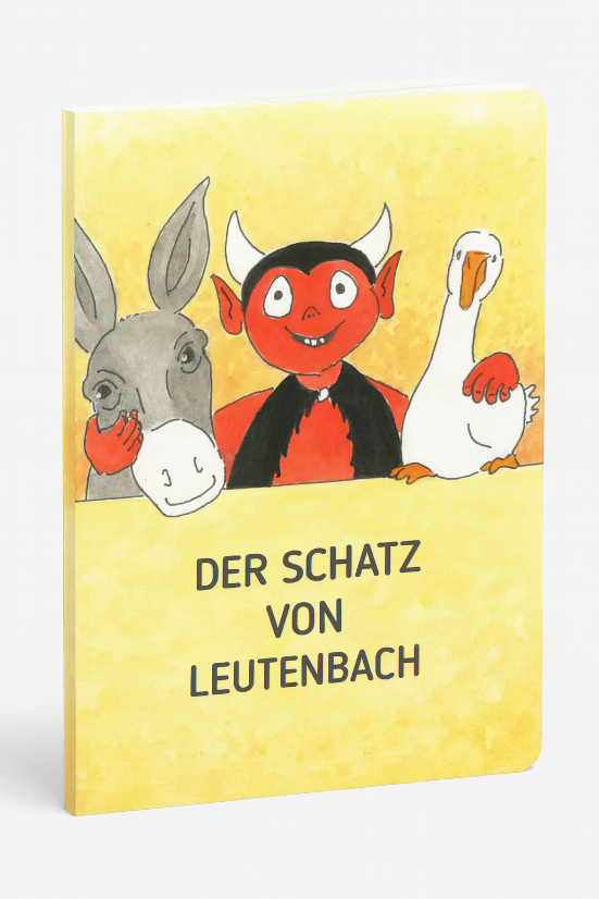 Im Jubiläumsteam kam die Idee auf, zum Gemeindejubiläum ein Kinderbuch herauszubringen. Grundlage für die Geschichte sollten die überlieferten Bezeichnungen für die Nellmersbacher, Leutenbacher und Weilermer sein – also Gees (schwäbisch für Gänse), Esel und Teufel. Ute Brandstätt brachte die Idee in die Umsetzung und verfasste eine warmherzige Geschichte über ein kleines, freundliches Teufelchen, das sich vergebens bemüht ein Feuer zu entfachen und dabei zufällig einen Hinweis auf einen Schatz findet. Auf der Suche nach dem Schatz begegnet er einer Gans und einem Esel. Gemeinsam gelingt es ihnen, den Schatz zu heben und stellen dabei fest, worauf es wirklich ankommt: auf Zusammenhalt und Freundschaft.